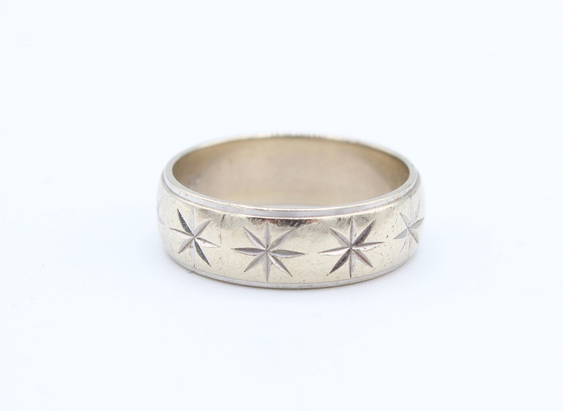 14k Mid Century Mens Wedding Band 70s Atomic Starburst White Etsy